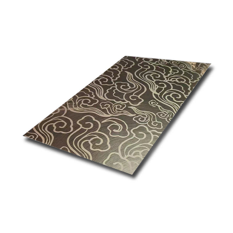 2. Lamiera in acciaio inossidabile incisa: La lamiera è stata sottoposta a un processo di incisione. L'incisione prevede l'utilizzo di sostanze chimiche o altri metodi per creare motivi, disegni o texture sulla superficie del metallo. Questo processo può aggiungere elementi decorativi e migliorare l'aspetto visivo dell'acciaio inossidabile.